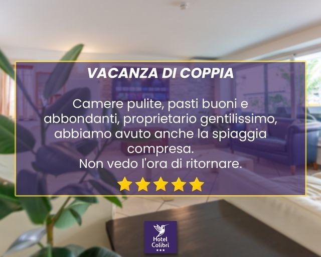 Per garantirti la qualità dei nostri servizi abbiamo selezionato per te le foto che meglio descrivono l’atmosfera familiare dell’Hotel Colibrì e i profumi della nostra cucina. Verifica ora la disponibilità per il tuo soggiorno a Rimini!